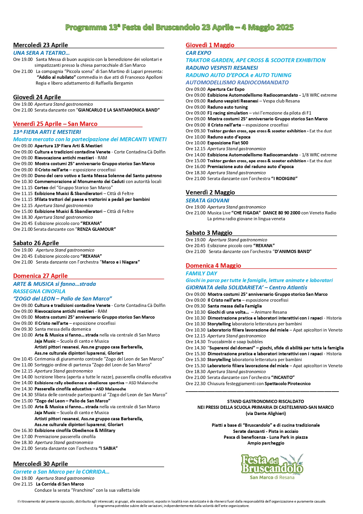 A San Marco di Resana (TV) la tradizionale Festa del Bruscandolo dal 23 aprile al 4 maggio
